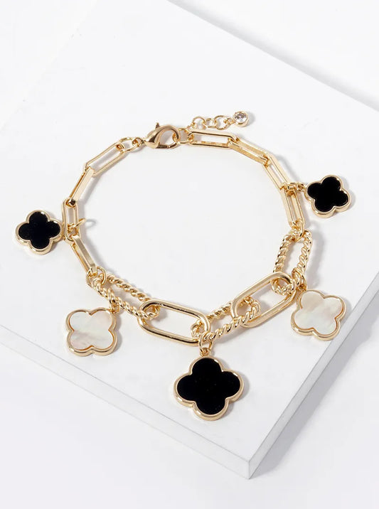 18k Gold Dipped Graduated Five Quatrefoil Charms Link Chain Bracelet