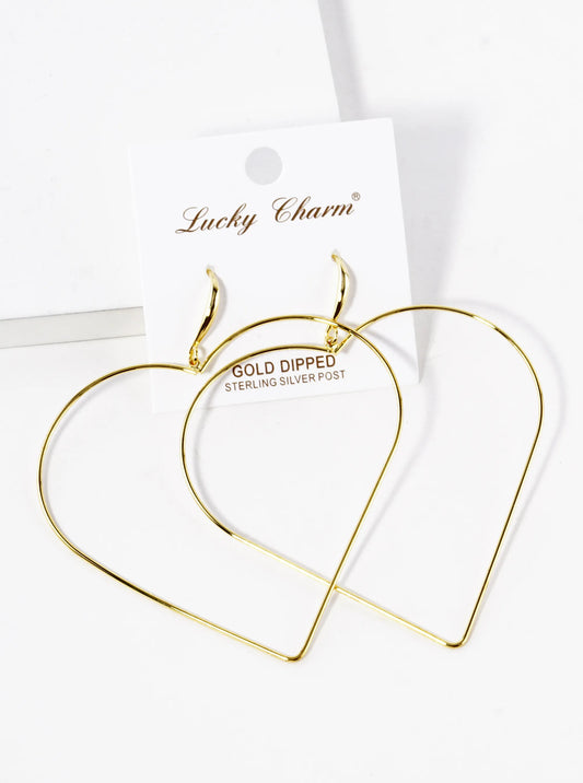 18K Gold Dipped Giant Wire Heart Drop Lightweight Earrings