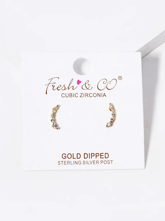 18k Gold Dipped Graduated Five CZ Stones Stud Earrings