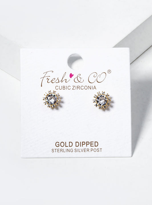 18k Gold Dipped Flower CZ Post Stud Earrings