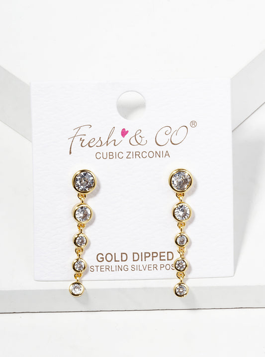 18k Gold Dipped Graduated Bezel CZ Drop Post Earrings