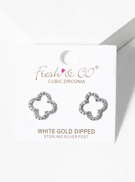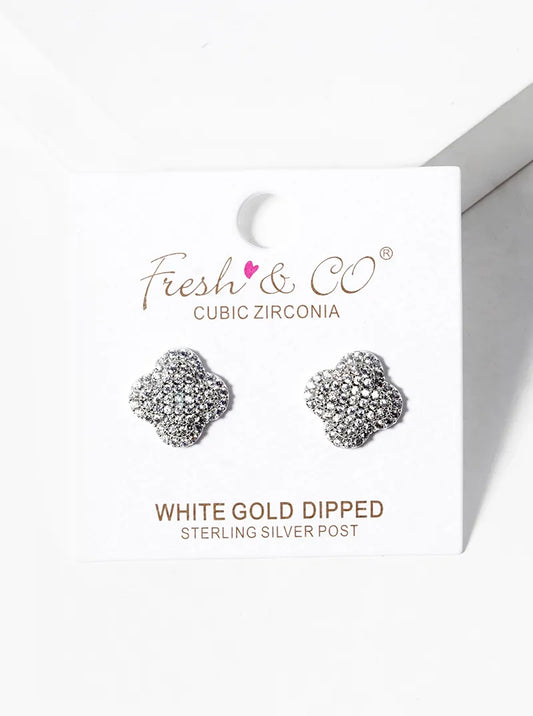 18K Gold Dipped Micro Pave Set 13mm Quatrefoil 925 Sterling Silver Post Stud Earrings