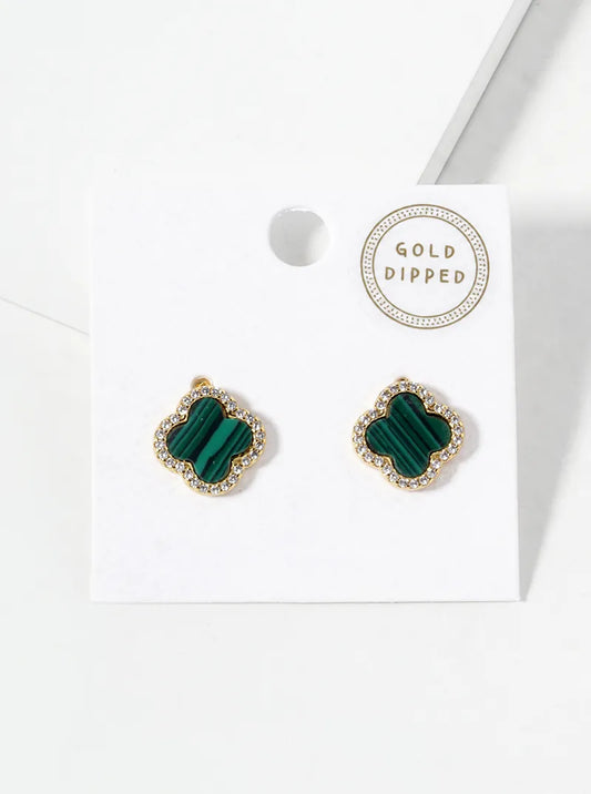 18K Gold Dipped Micro Pave Set Cubic Zirconia 13mm Semi-Precious Quatrefoil 925 Sterling Silver Post Stud Earrings