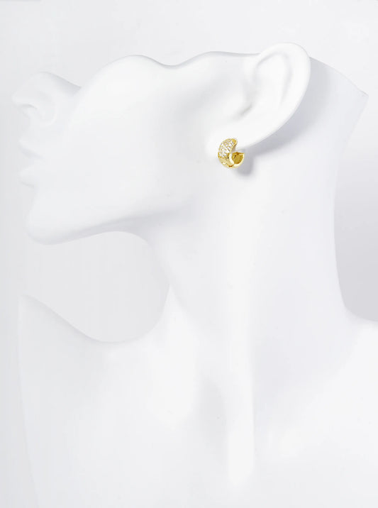 18K Gold Dipped Pave Set Cubic Zirconia 10mm Bold Huggie Hoop Earrings
