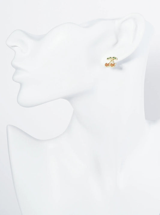 18K Gold Dipped Pave Set Cubic Zirconia Cherry Stud Earrings