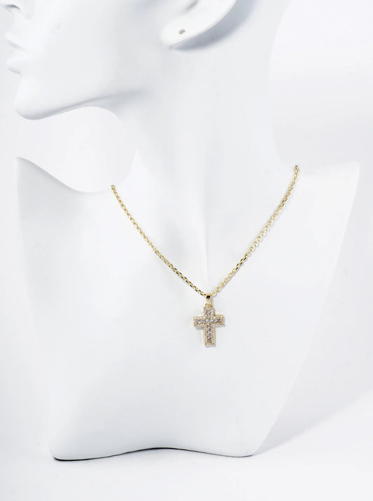 18K Gold Dipped Pave Set Cubic Zirconia Cross Pendant Necklace