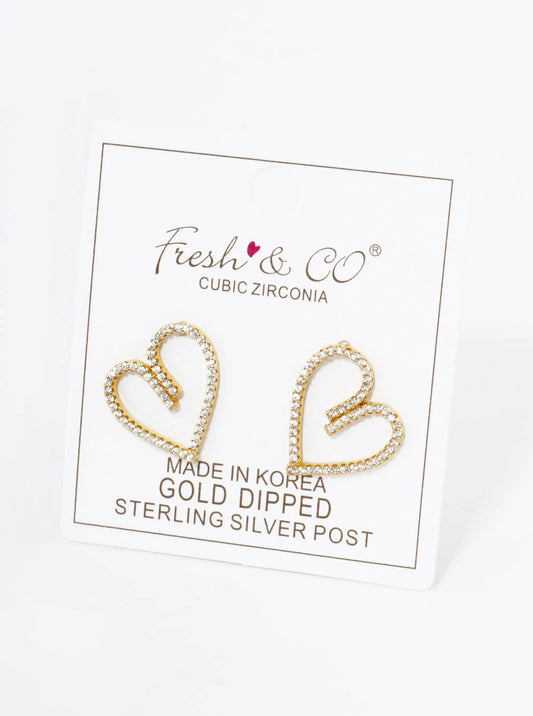 18K Gold Dipped Pave Cubic Zirconia Heart Stud Earrings
