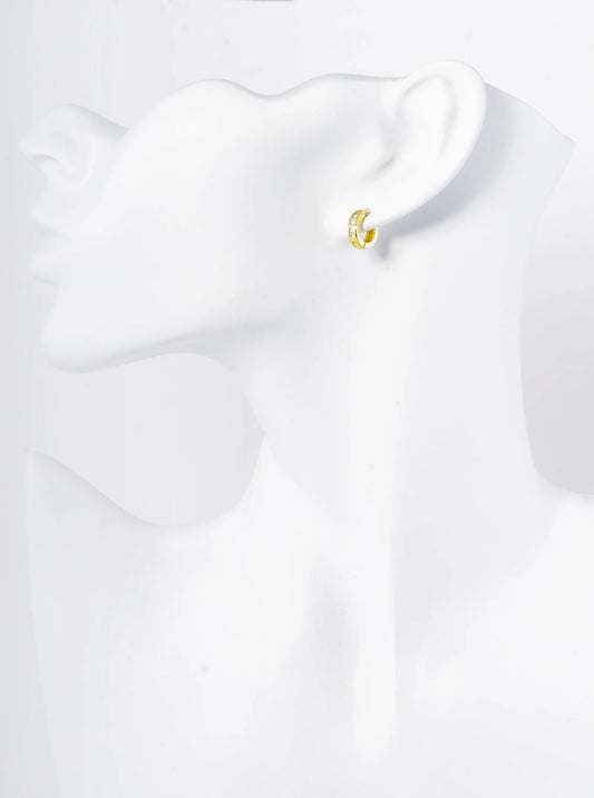 18K Gold Dipped Pave Set Cubic Zirconia 10mm Huggie Hoop Earrings