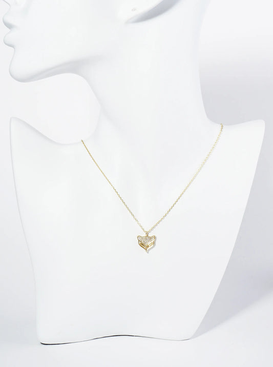 18K Gold Dipped Pave Cubic Zirconia Heart Pendant Necklace