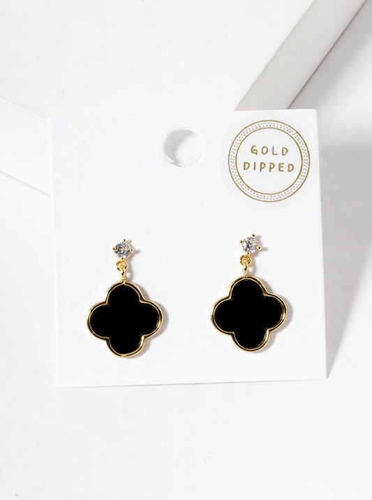 18K Gold Dipped Quatrefoil Drop Dangle Post Earrings