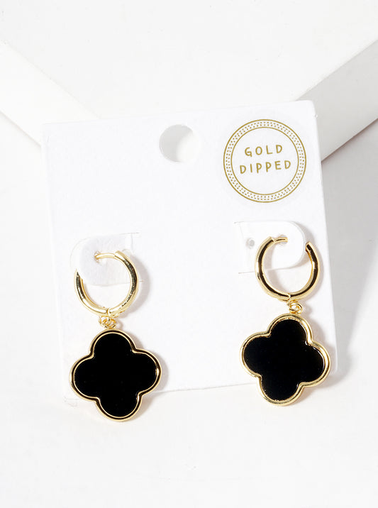 18K Gold Dipped Quatrefoil Drop Huggie Hoop Earrings
