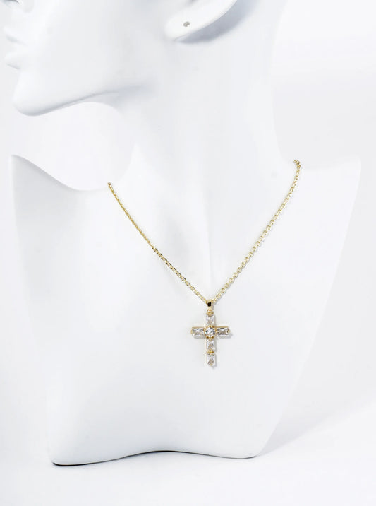 18K Gold Dipped Rectangular Cubic Zirconia Cross Pendant Necklace
