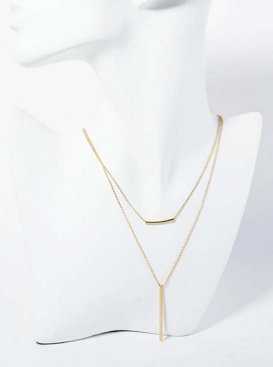 18K Gold Dipped Polished Vertical Bar Pendant Layered Necklace