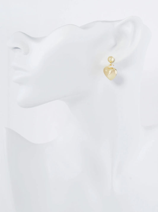 18K Gold Dipped Puffy Heart Drop Dangle Post Earrings