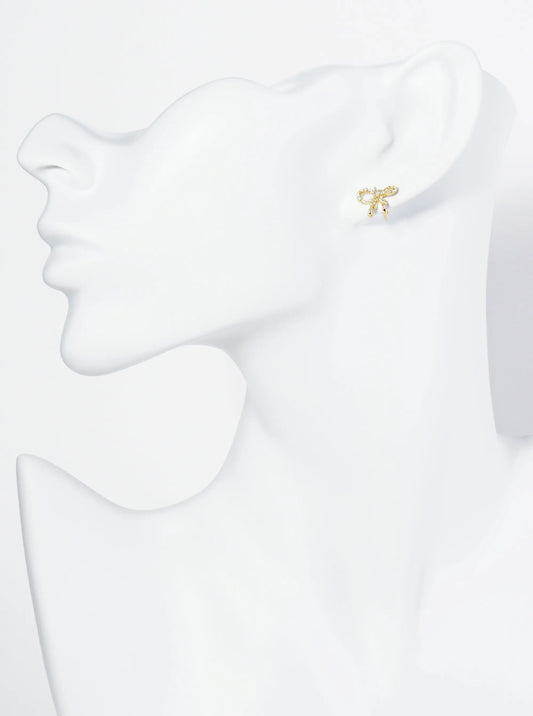 18K Gold Dipped Ribbon Bow Dainty Cubic Zirconia Stud Earrings