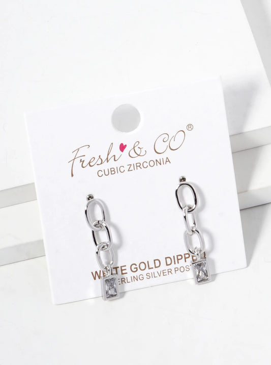 18k Gold Dipped Rectangle CZ Drop Chain Post Earrings