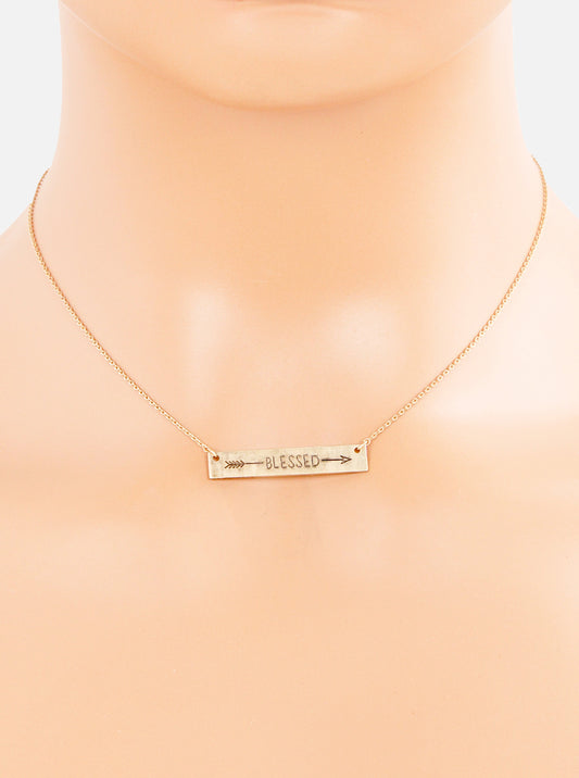 Blessed Arrow Engraved Horizontal Bar Pendant Necklace