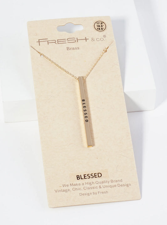 Blessed Engraved 18K Gold Dipped Horizontal Brass Bar Pendant Inspirational Necklace