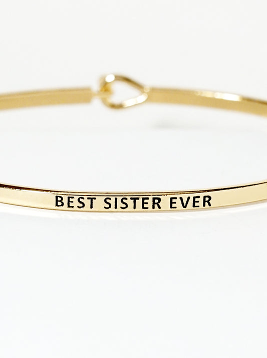 Best Sister Ever Engraved Inspirational Bangle Bracelet