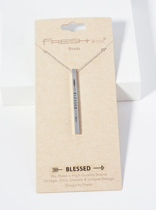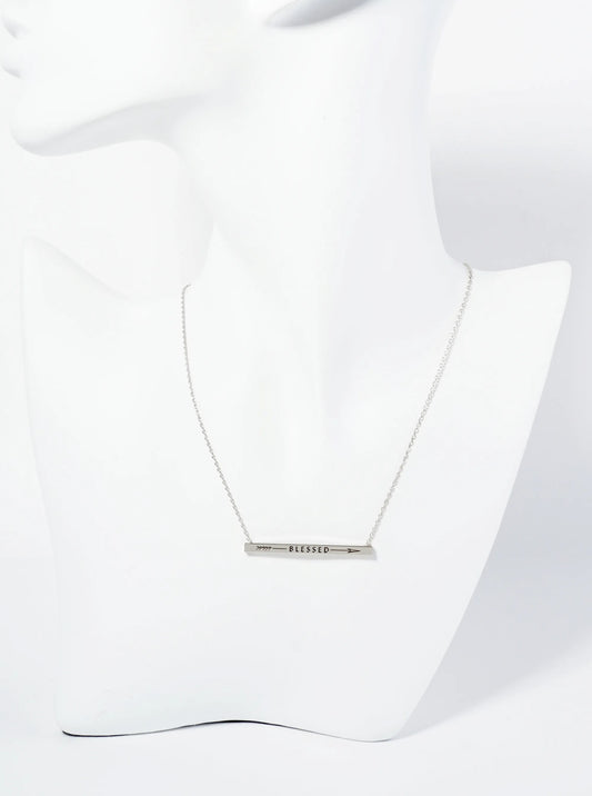 Blessed Engraved Vertical Bar Pendant Inspirational Necklace