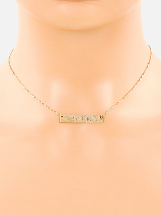 Breathe Engraved Horizontal Bar Pendant Necklace