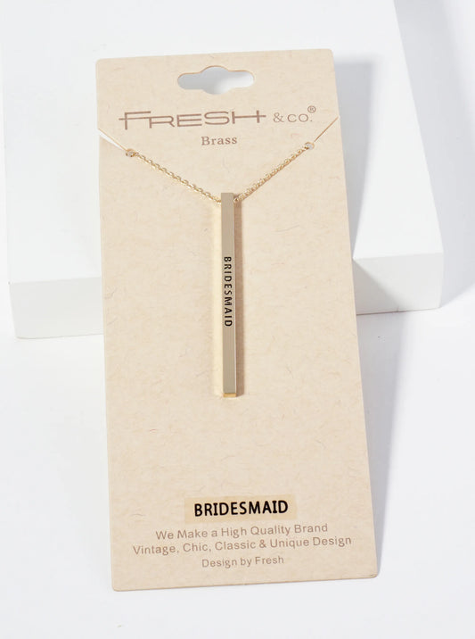 Bridesmaid Engraved Vertical Bar Pendant Inspirational Necklace
