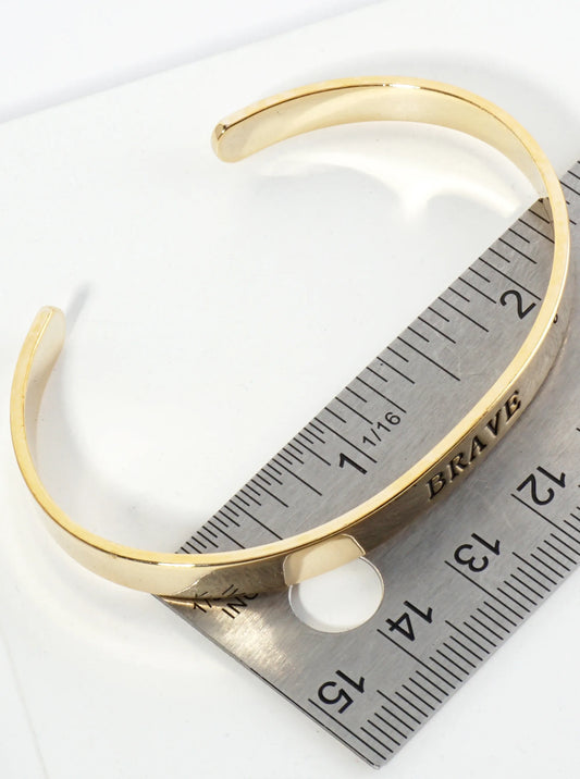 Brave Engraved 18K Gold Dipped Open Cuff Bangle Bracelet