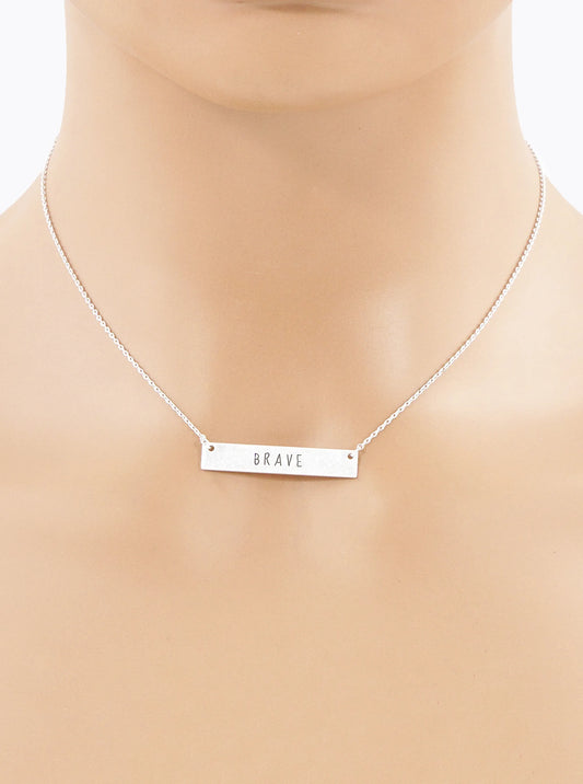 Brave Engraved Vertical Bar Pendant Inspirational Necklace