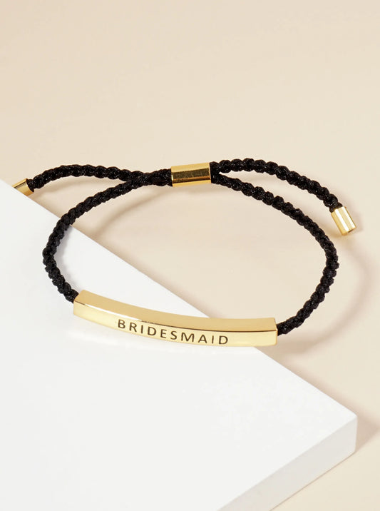 Bridesmaid Engraved 18K Gold Dipped Curved Brass Tube Bar Adjustable Pull Tie Bracelet
