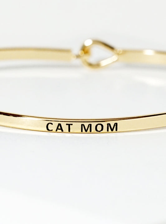 Cat Mom Engraved Inspirational Bangle Bracelet