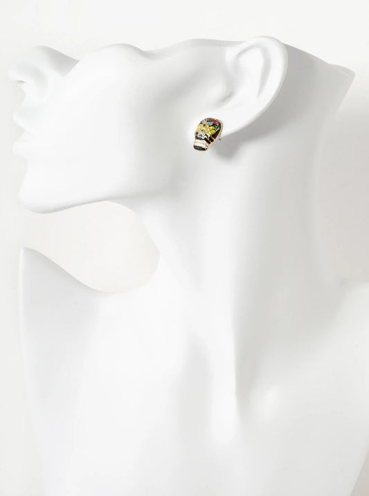 Colorful Enamel Skull Head With Flower 15mm Calavera Sugar Skull Stud Earrings