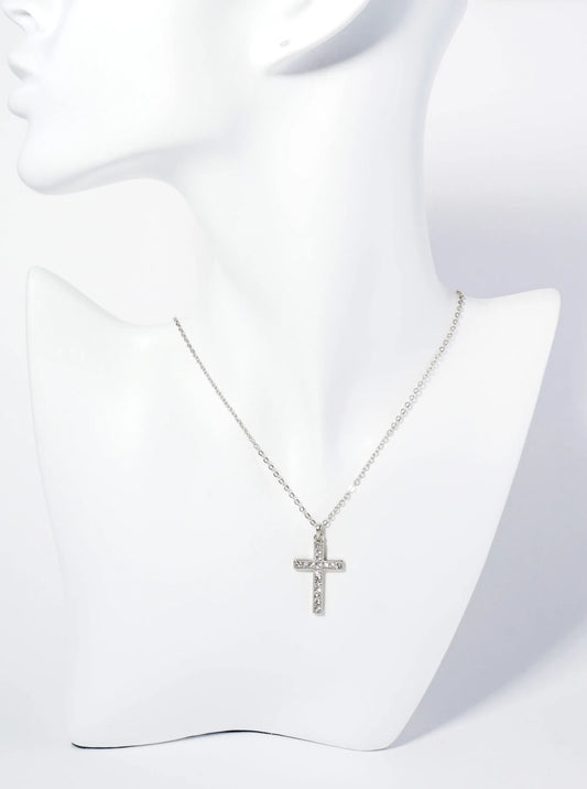 Crystal Pave 1 Inch Cross Pendant Necklace