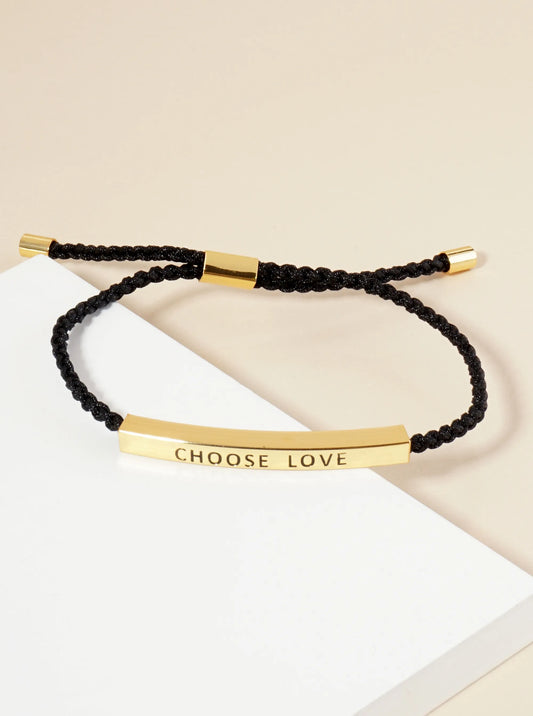 Choose Love Engraved 18K Gold Dipped Curved Brass Tube Bar Adjustable Pull Tie Bracelet