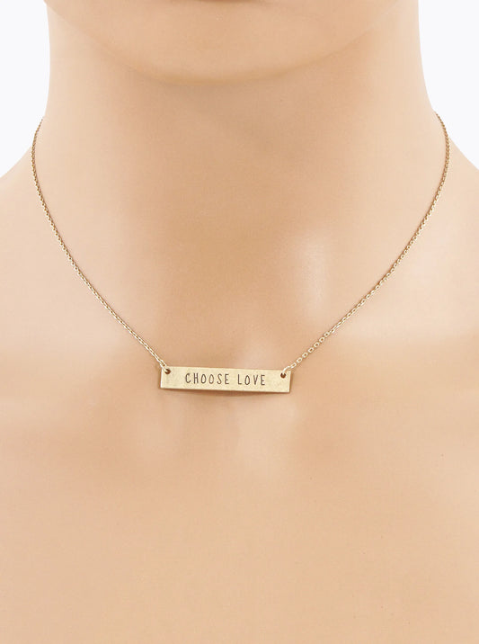 Choose Love Engraved Horizontal Bar Pendant Necklace
