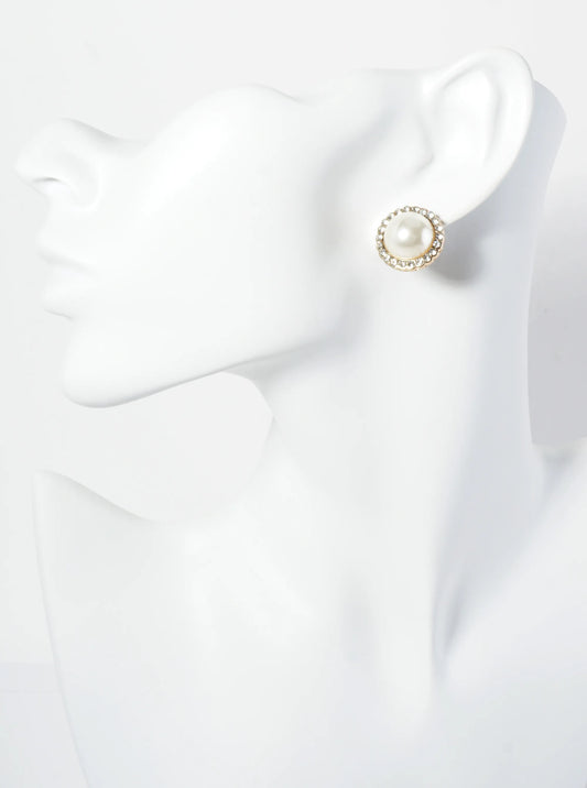 Crystal Encircling Pearl Bead Button Stud Earrings