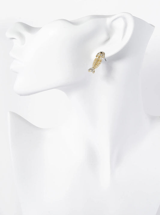 Crystal Pave 1 Inch Fishbone Stud Earrings