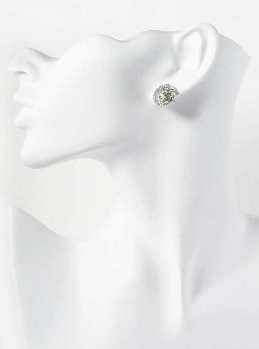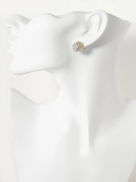 Crystal Pave 14mm Puffy Round Button Stud Earrings