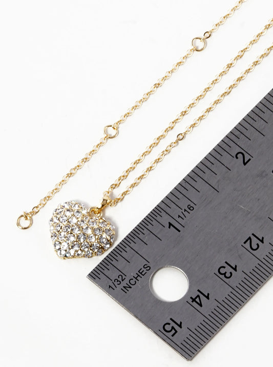 Crystal Pave 15mm Puffy Heart Pendant Necklace