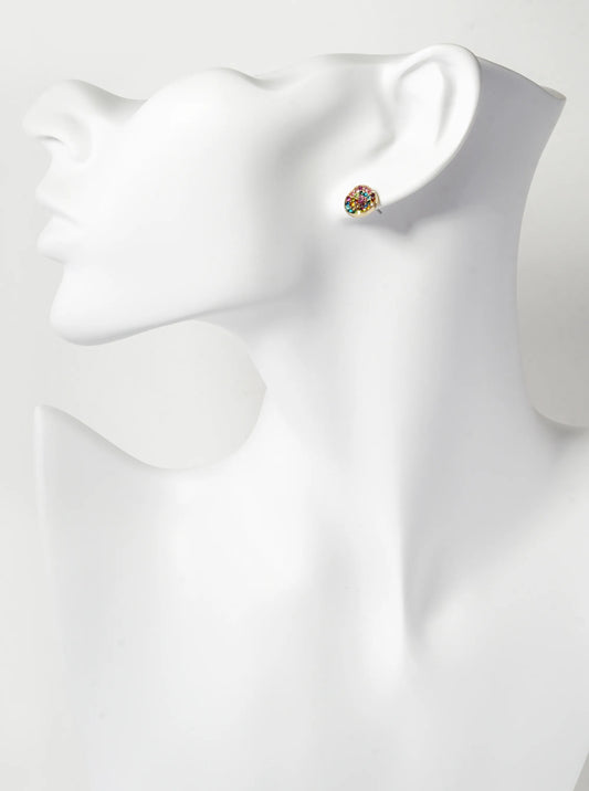 Crystal Pave 9mm Curved Round Disc Button Stud Earrings