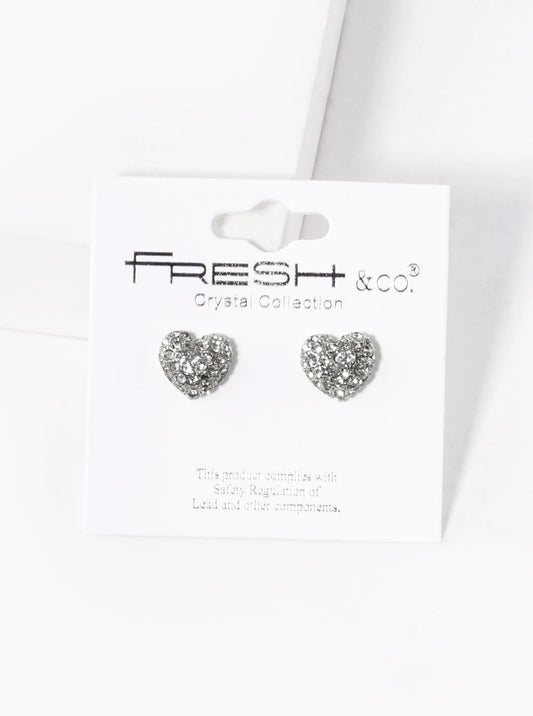 Crystal Pave 9mm Puffy Heart Stud Earrings