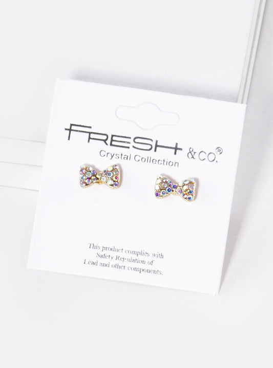 Crystal Pave 6mm Ribbon Bow Stud Earrings