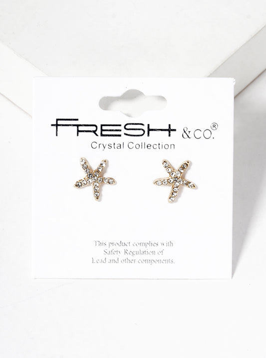 Crystal Pave 8mm Starfish Post Stud Earrings