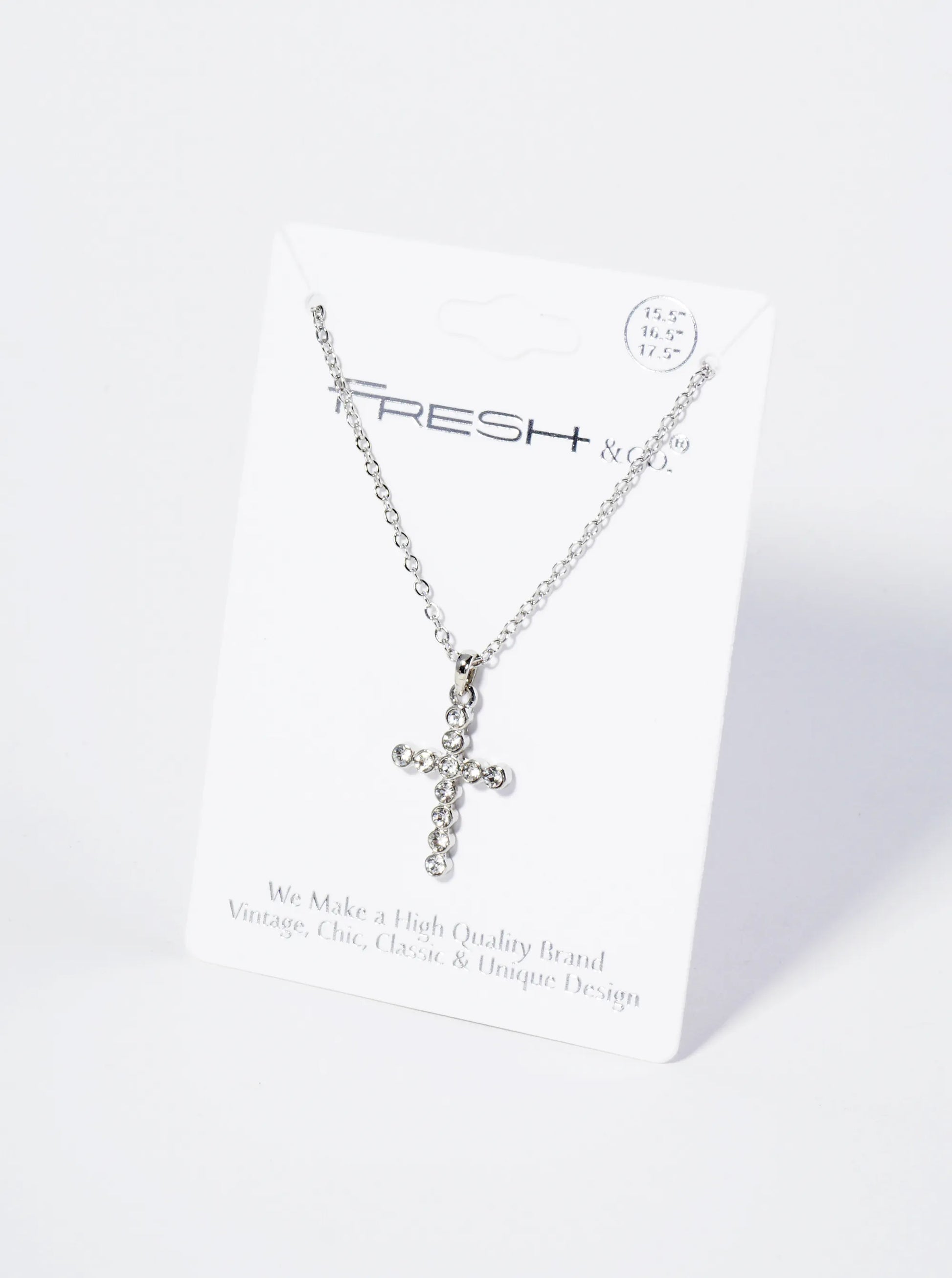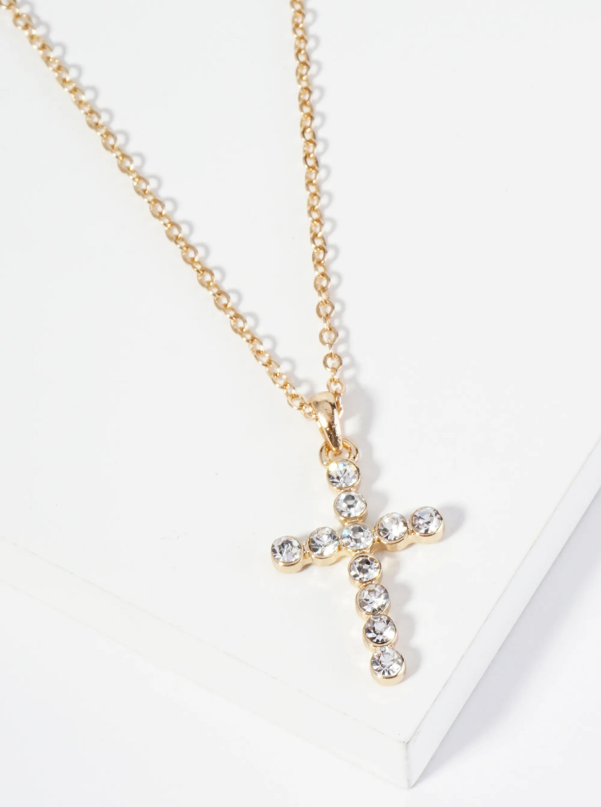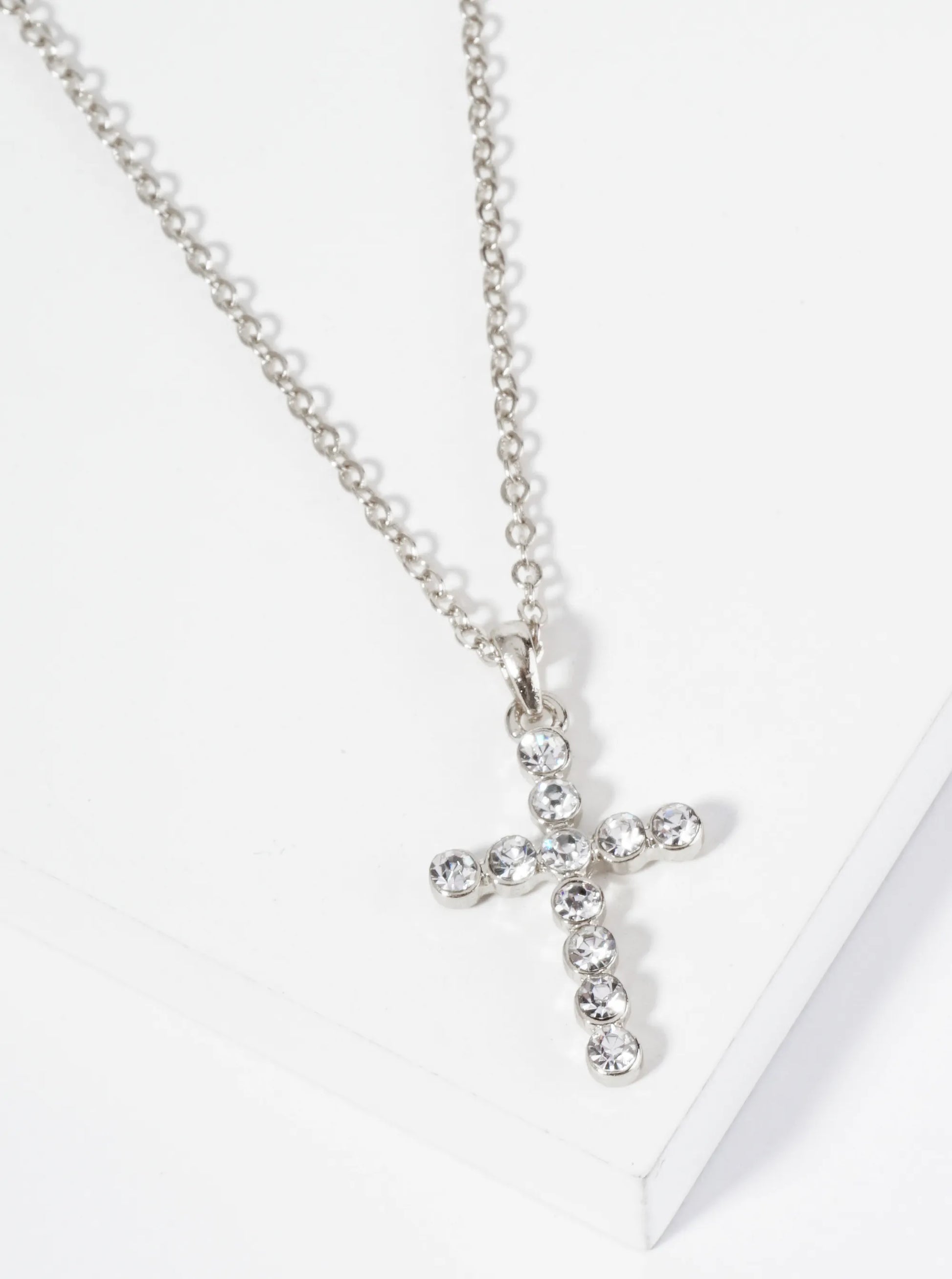 1 Inch Round Bezel Set Rhinestone Cross Pendant Necklace