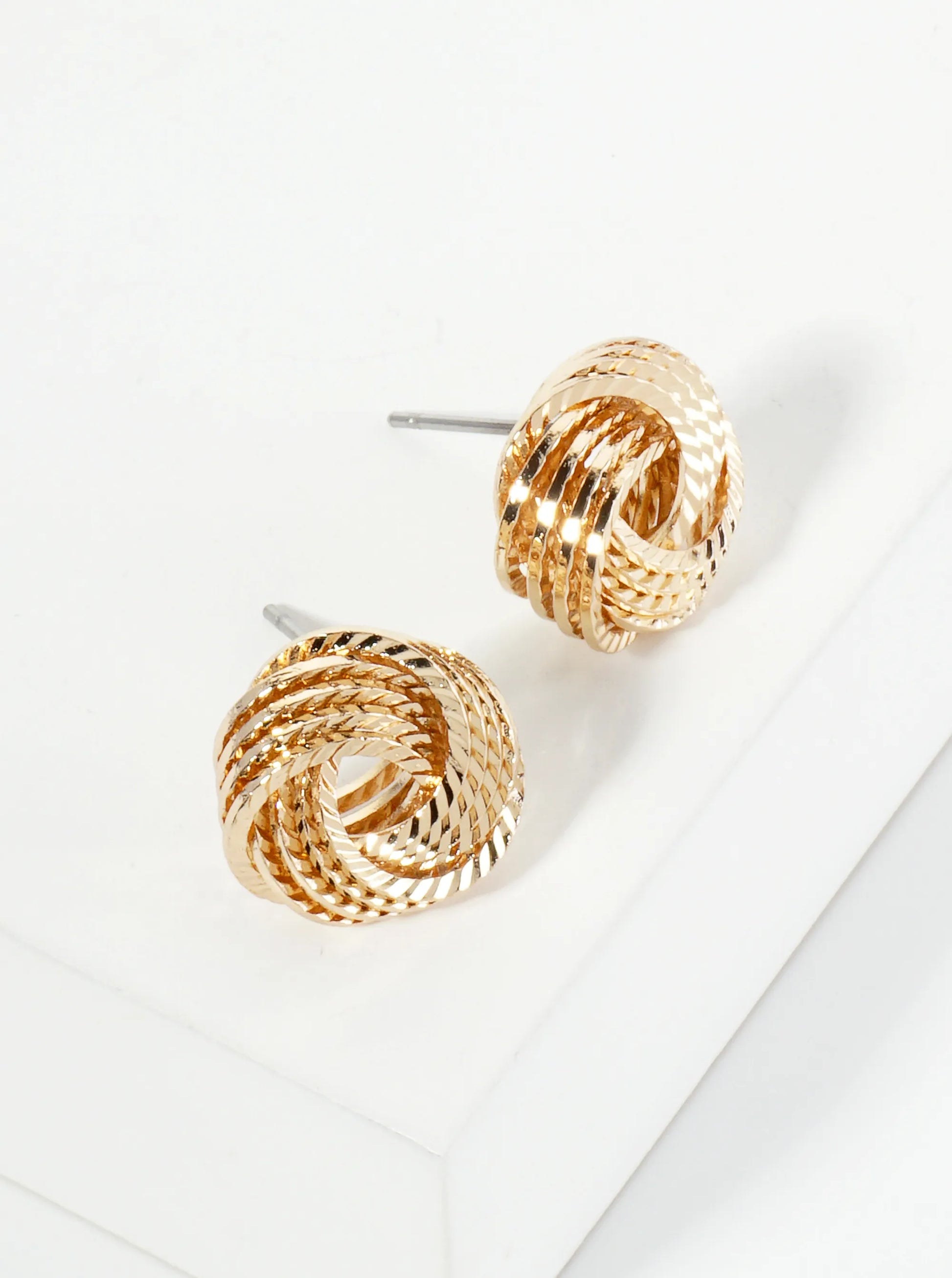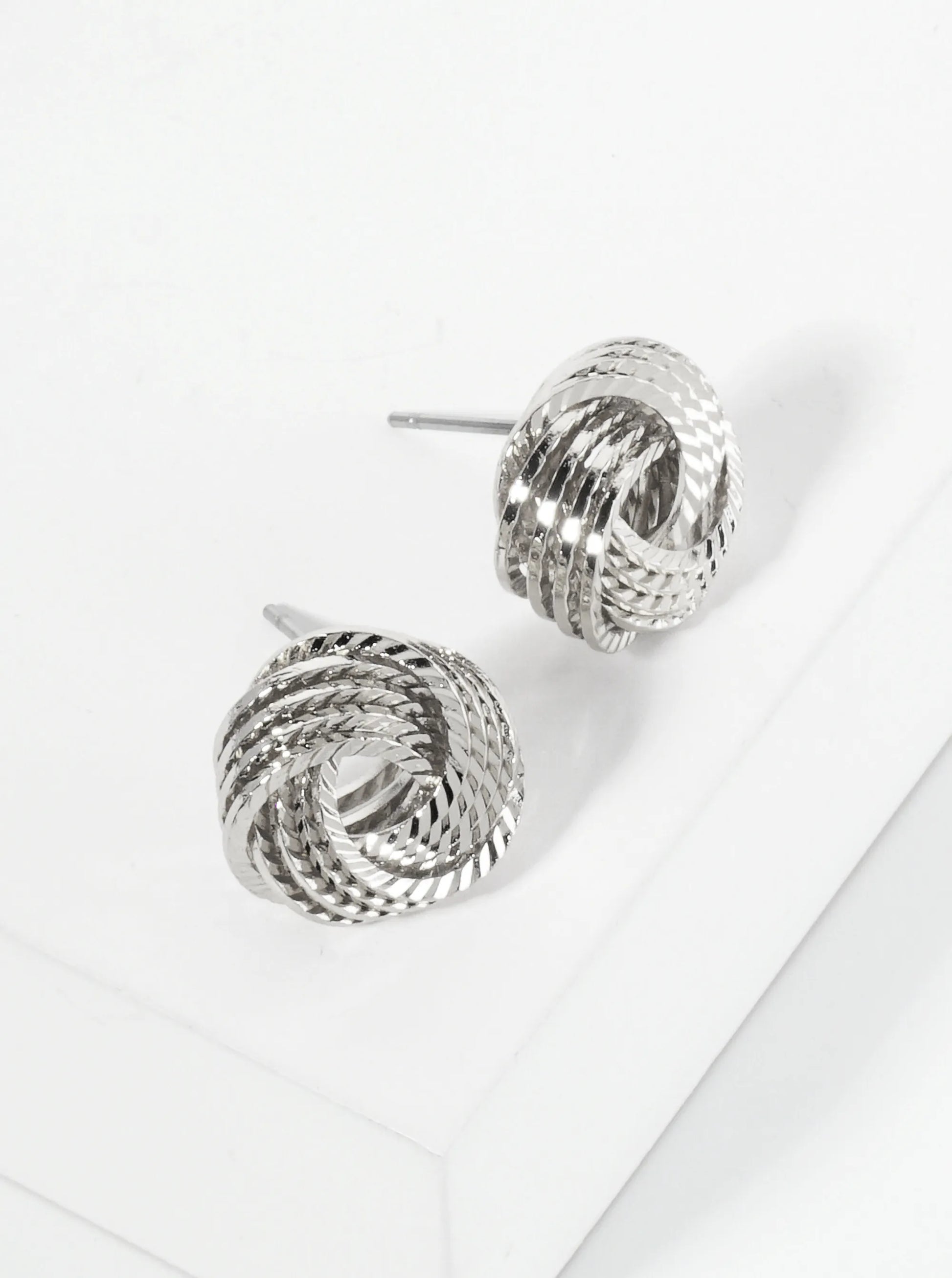 14mm Textured Metal Lightly Flattened Love Knot Stud Earrings
