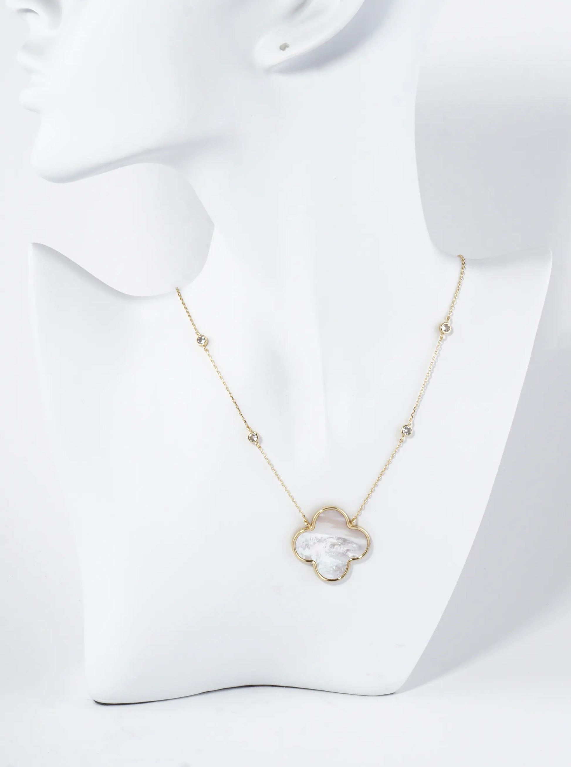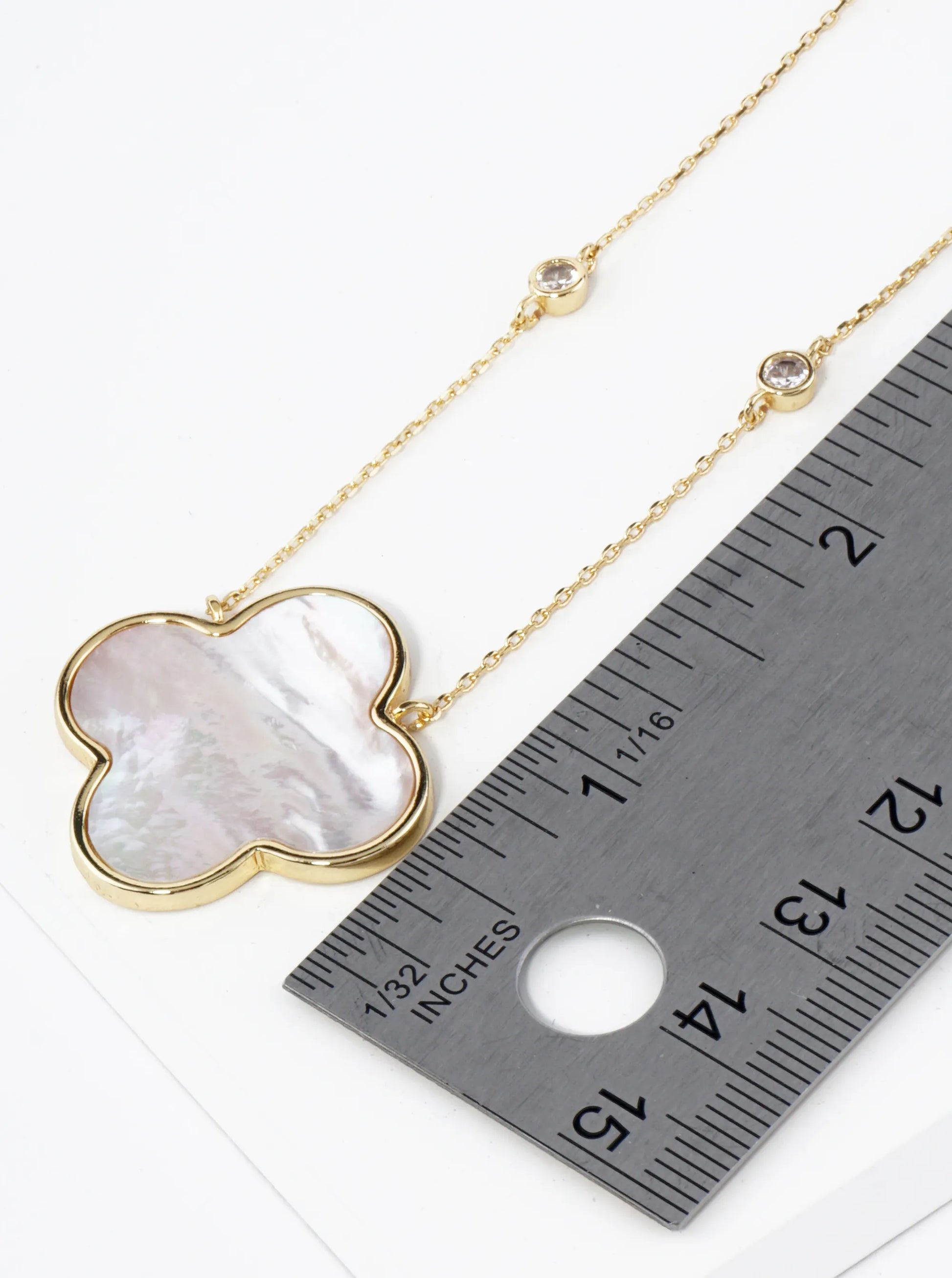 18K Gold Dipped 1 Inch Quatrefoil Pendant CZ Stone Chain Necklace