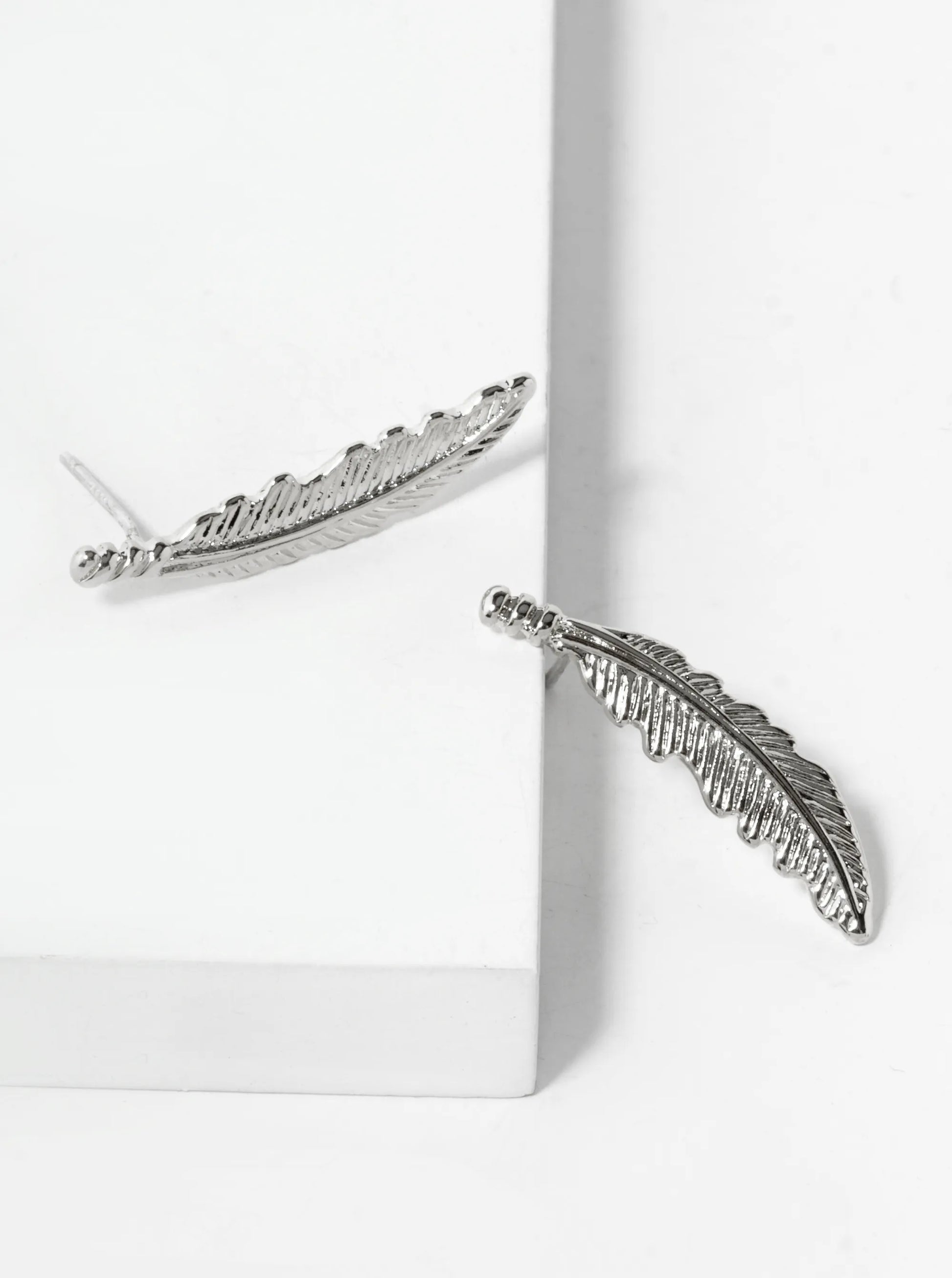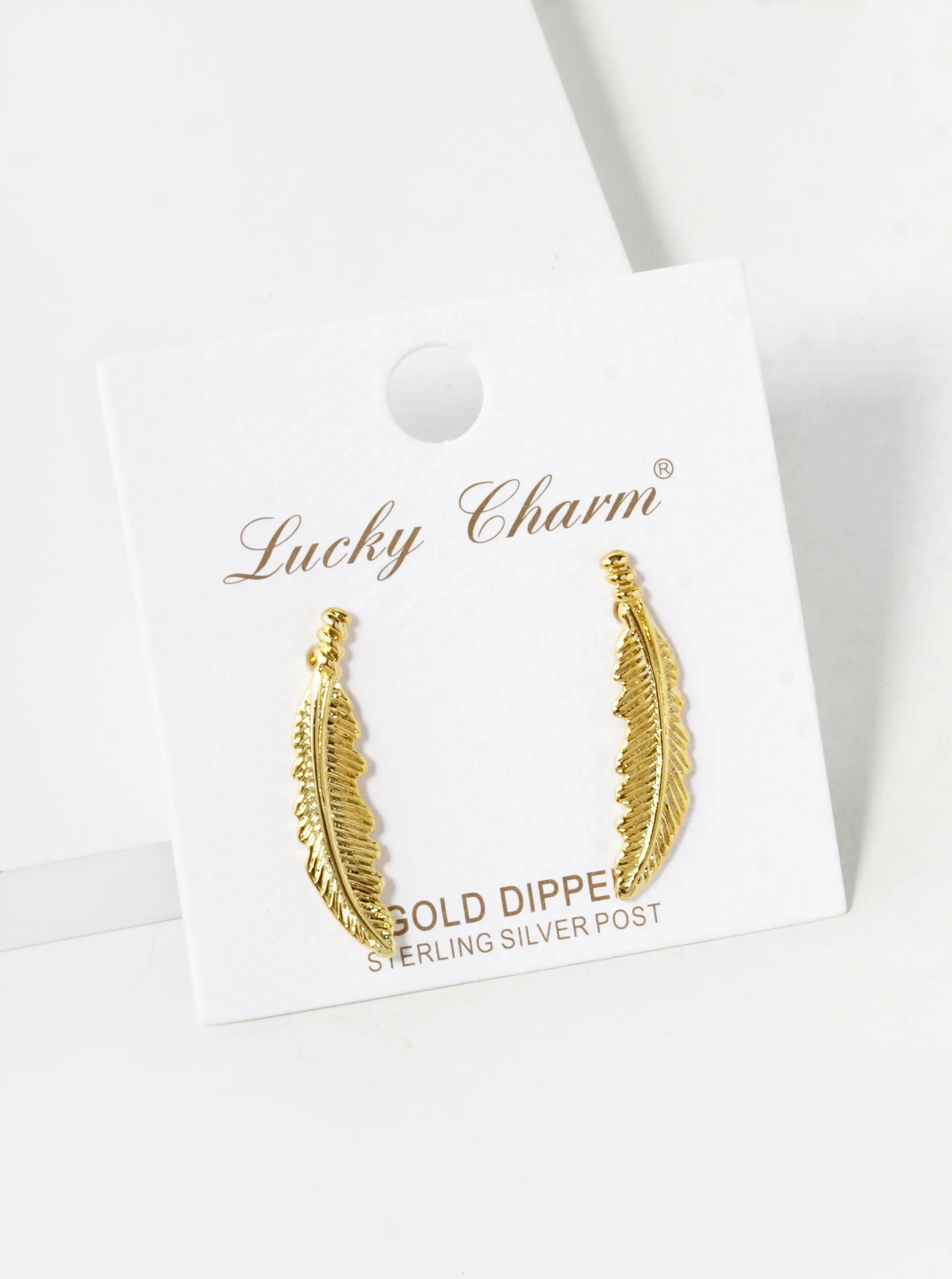 18K Gold Dipped 1 Inch Textured Brass Feather Sterling Silver Post Stud Earrings
