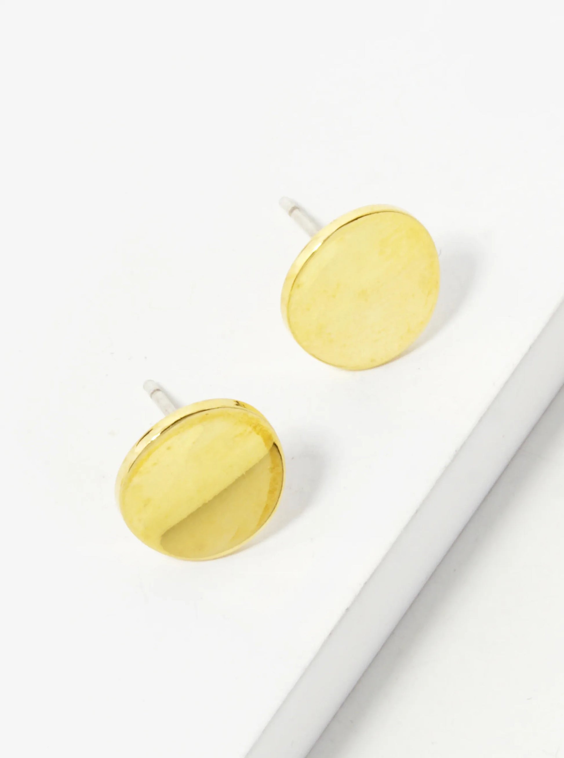 18K Gold Dipped 10mm Curved Brass Round Sterling Silver Post Stud Earrings