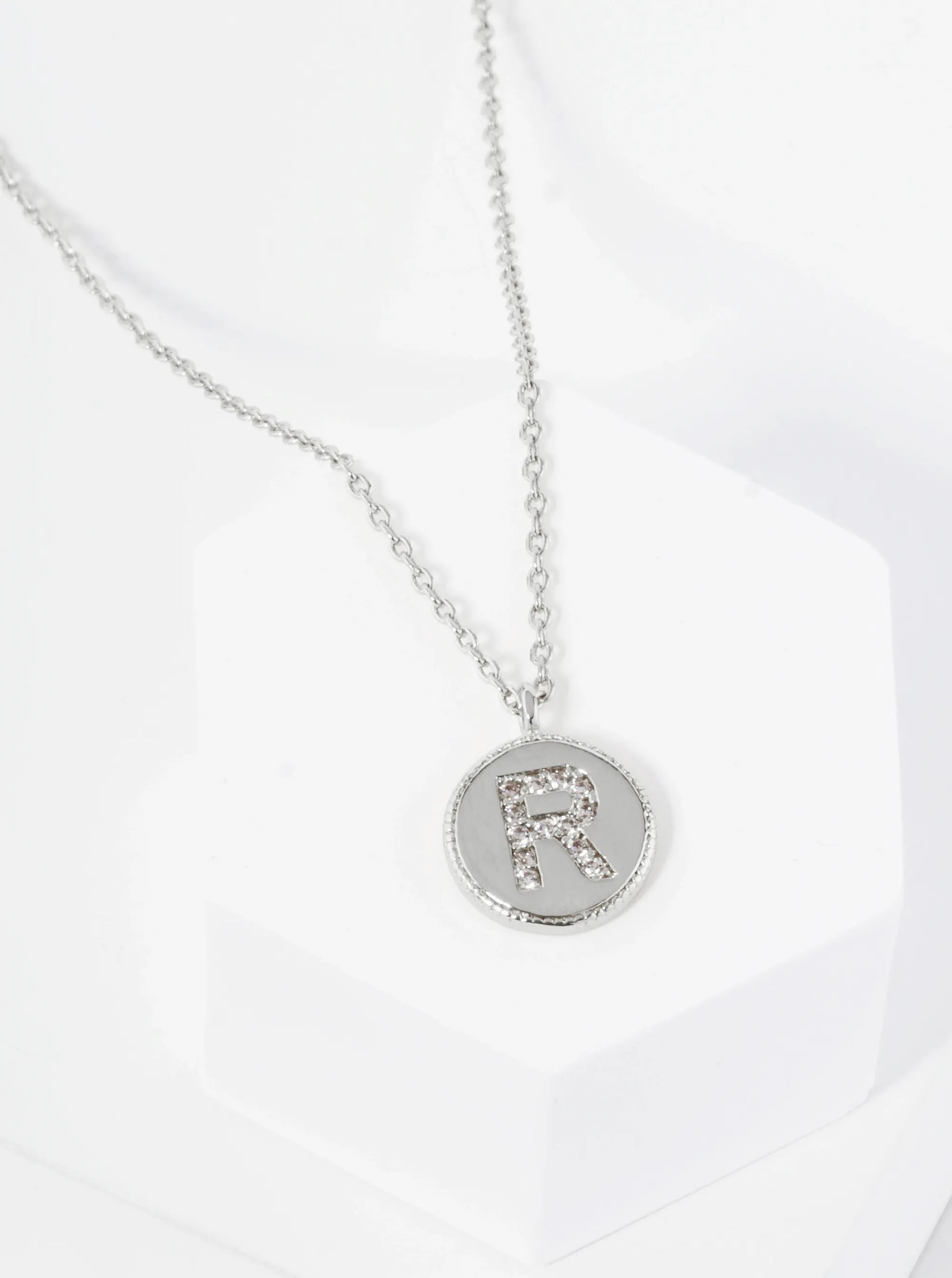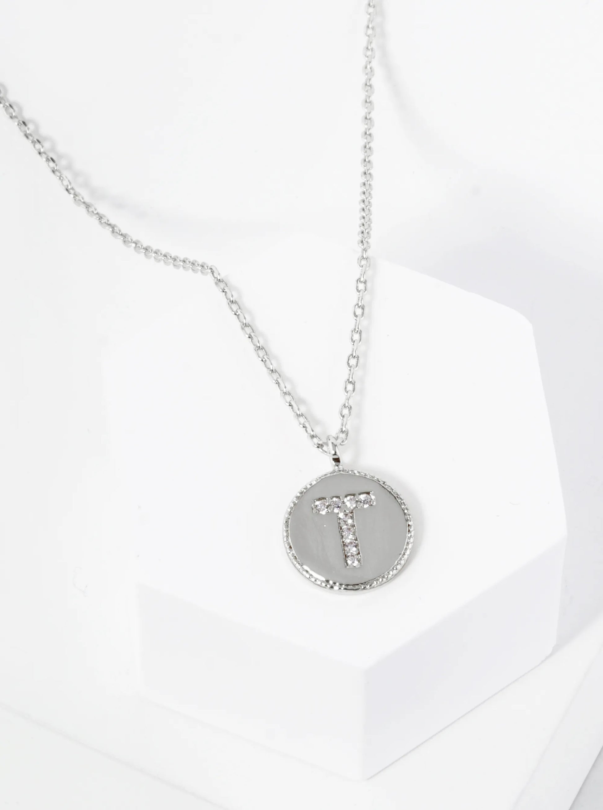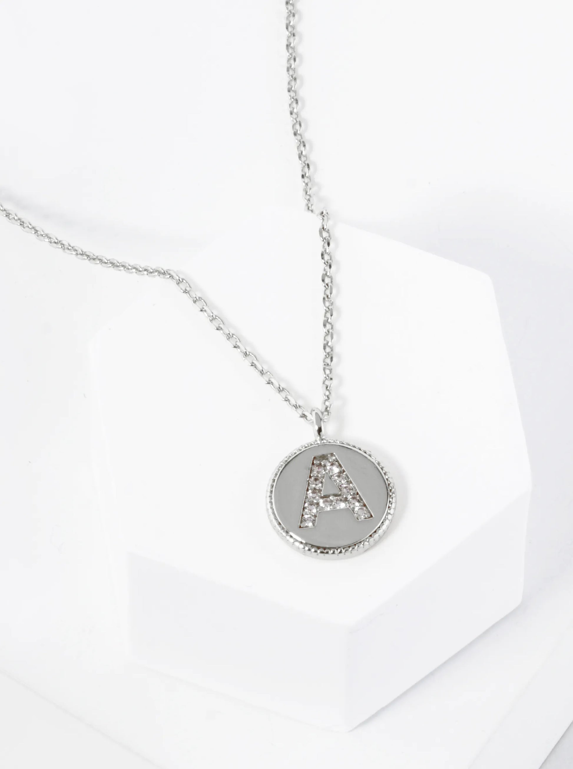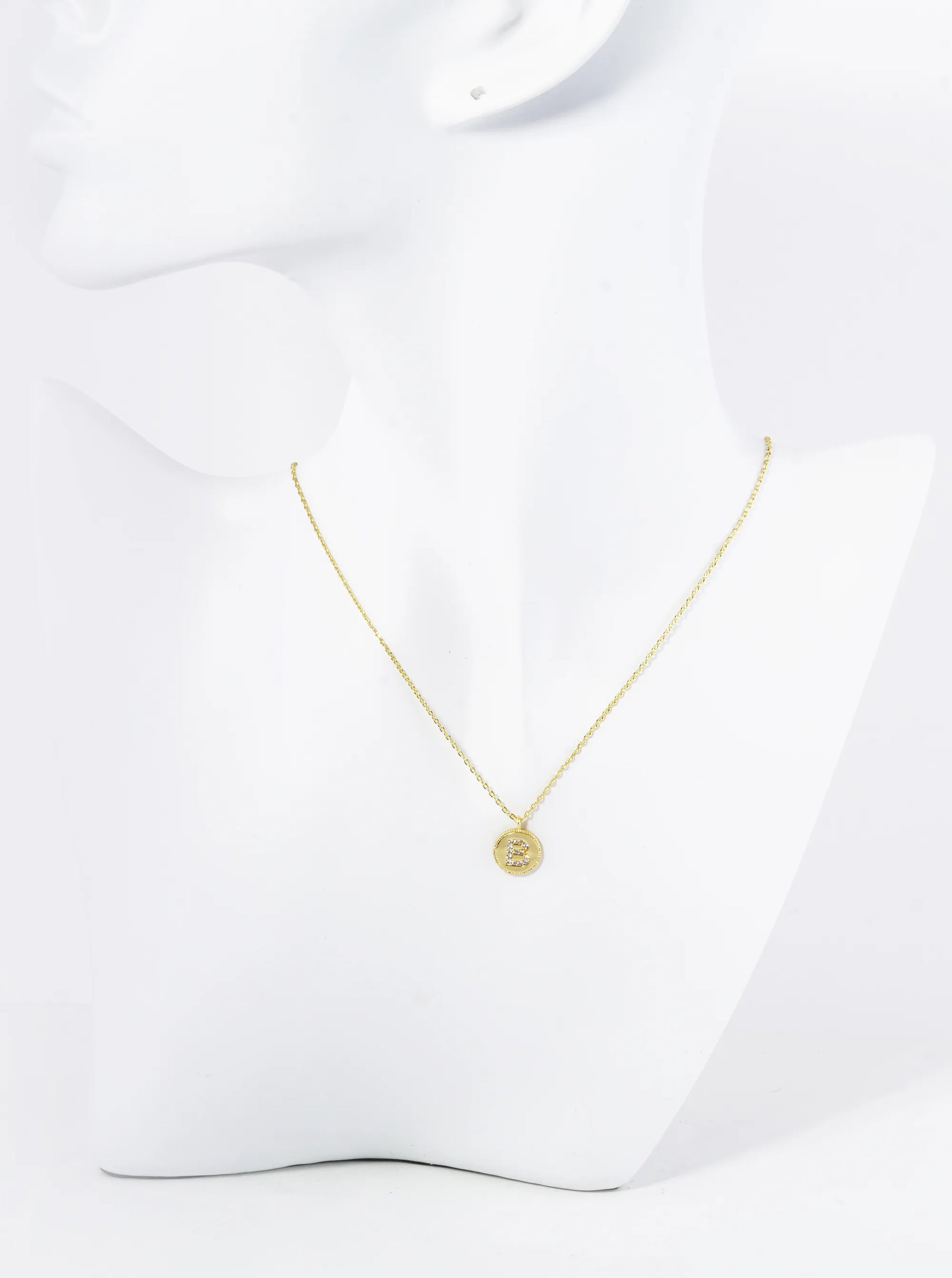 18K Gold Dipped 10mm Medallion Pave Set CZ Initial Pendant Necklace