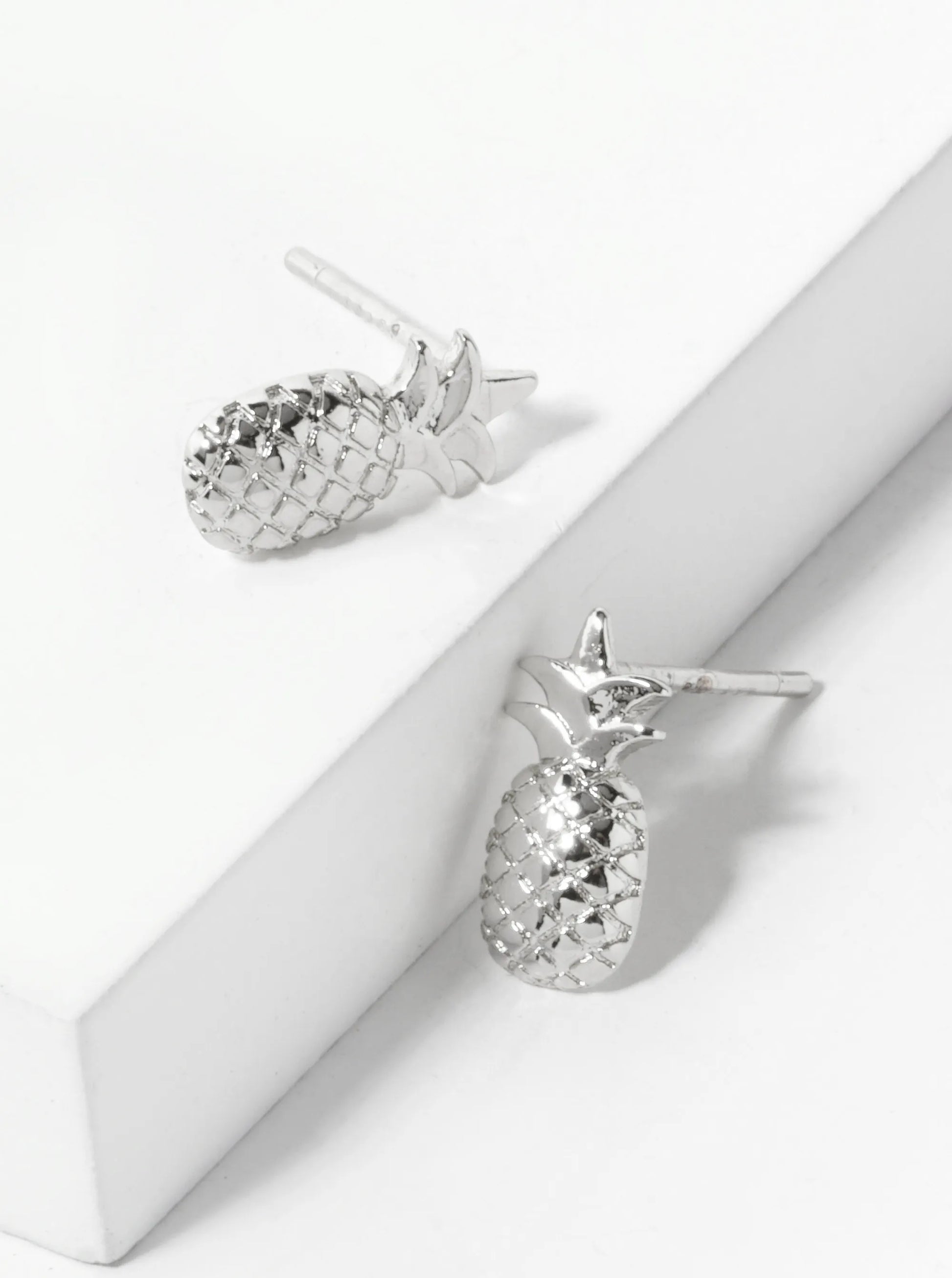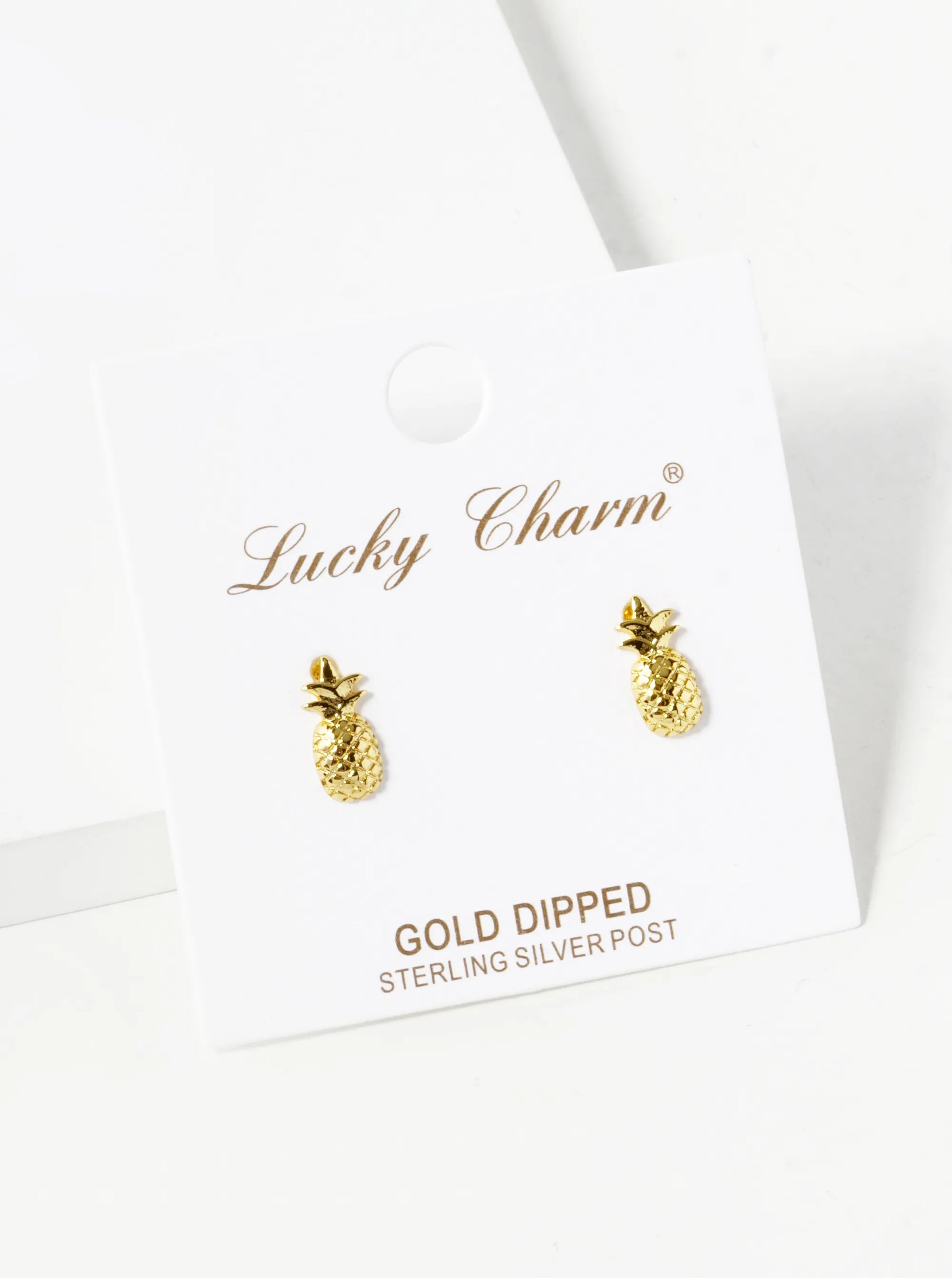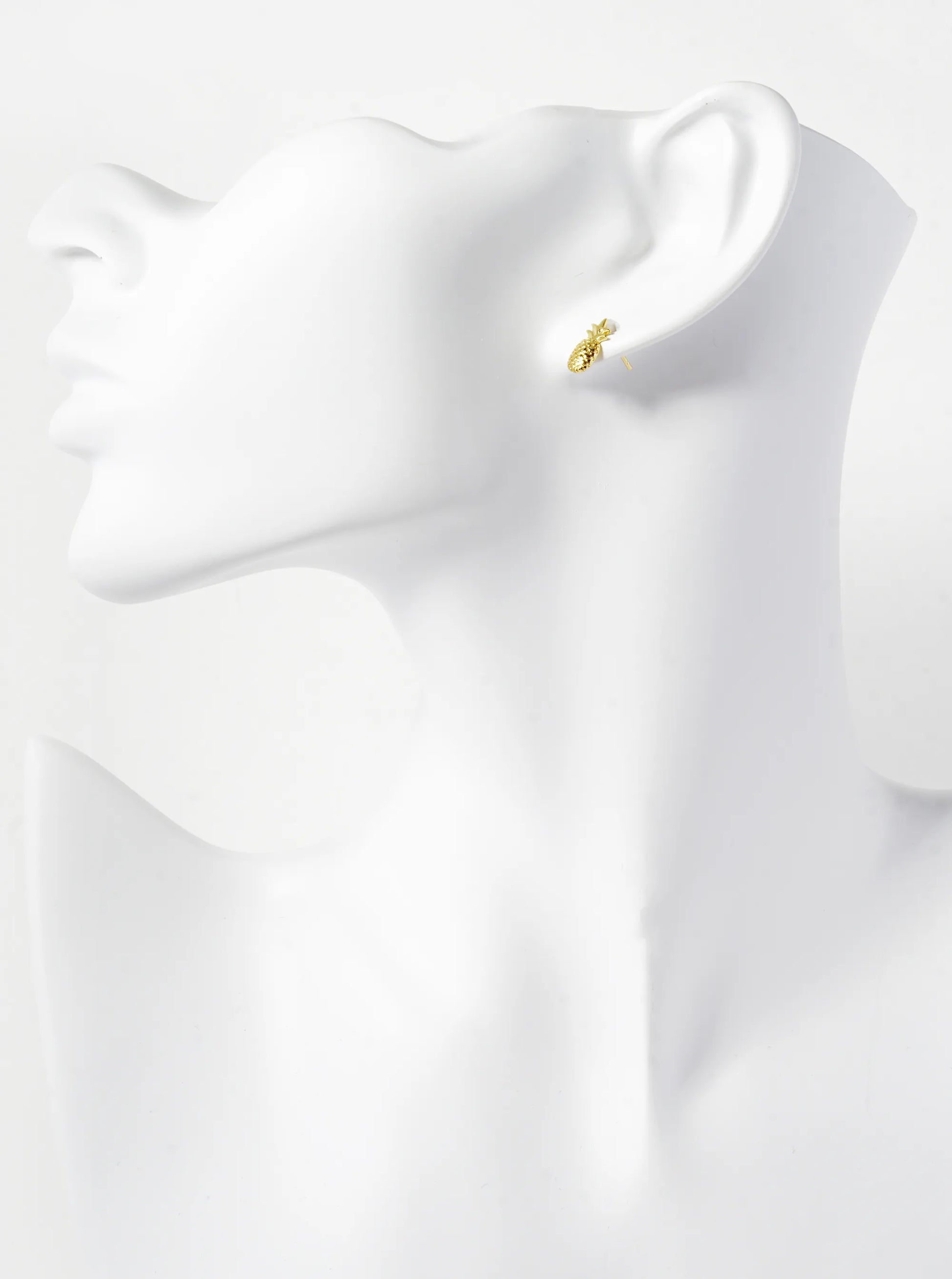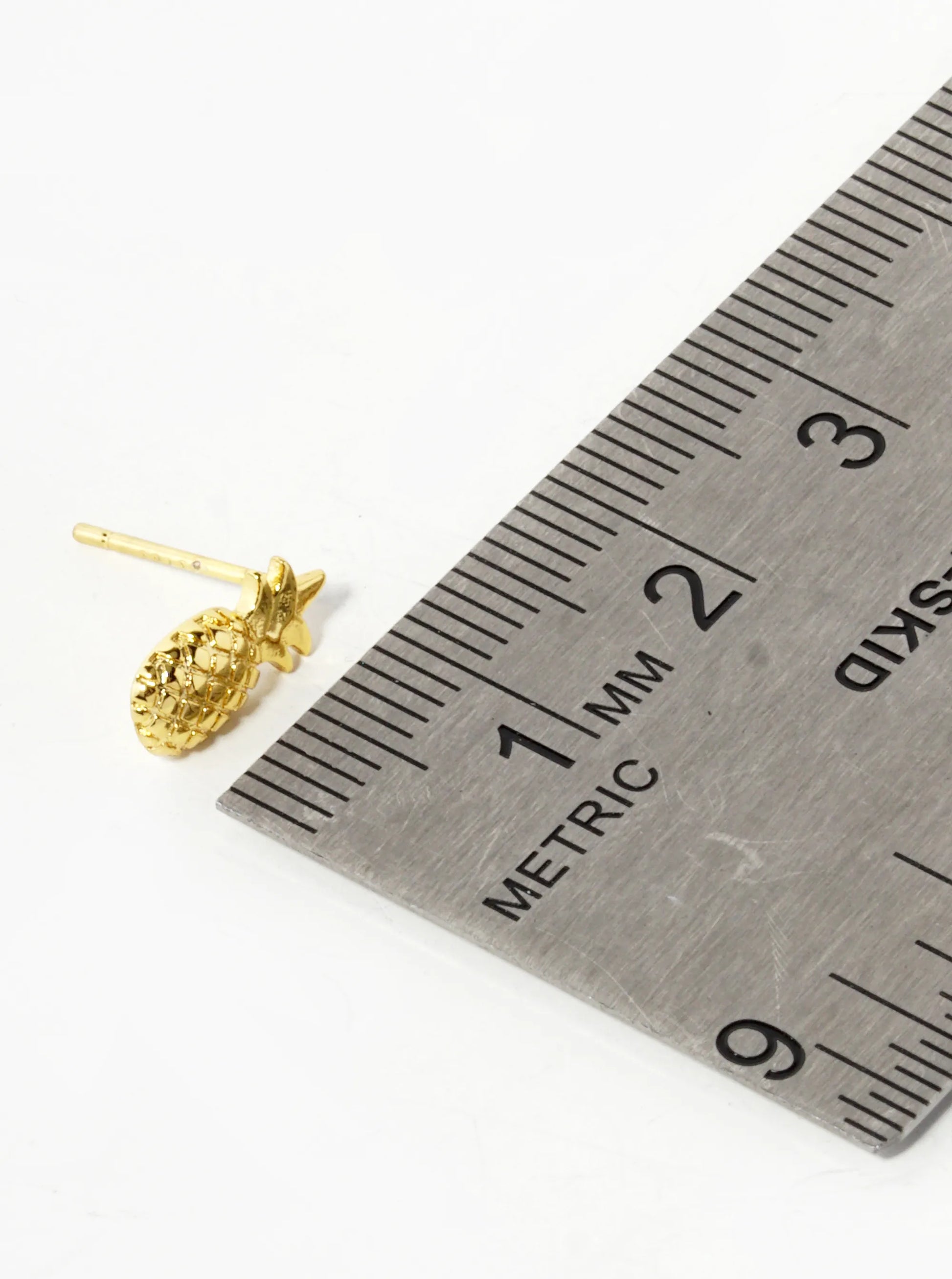 18K Gold Dipped 10mm Textured Brass Pineapple Sterling Silver Post Stud Earrings