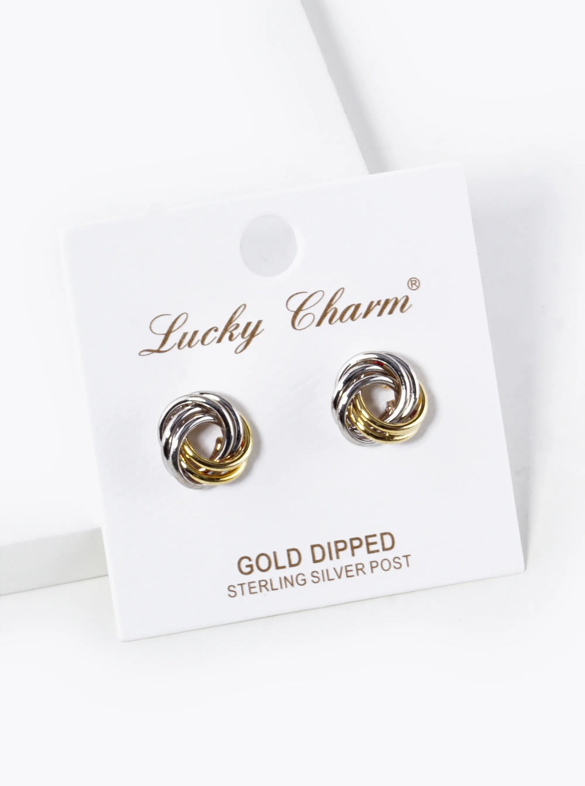 18K Gold Dipped 11mm Brass Love Knot Stud Earrings